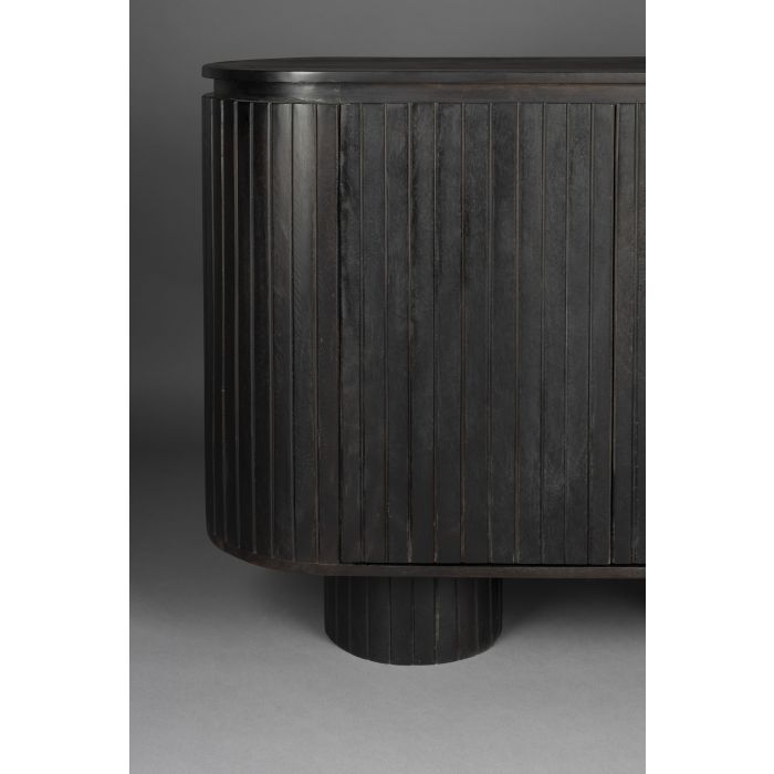 Met de Dutchbone Kenji haal je een robuust meubel in huis, waarmee je interieur direct meer karakter krijgt. Deze kast valt namelijk zowel op door het materiaal, de vorm als de prachtige details. Dit sideboard of cabinet is volledig gemaakt van zwart hout en heeft een prachtige ovalen vorm. Deze komt nog beter tot z’n recht door de twee brede poten, die het meubel een stukje van de grond liften. De verticale latjes maken de look compleet en zorgen ervoor dat de deurtjes nauwelijks zichtbaar zijn, waardoor het meubel net één geheel lijkt.