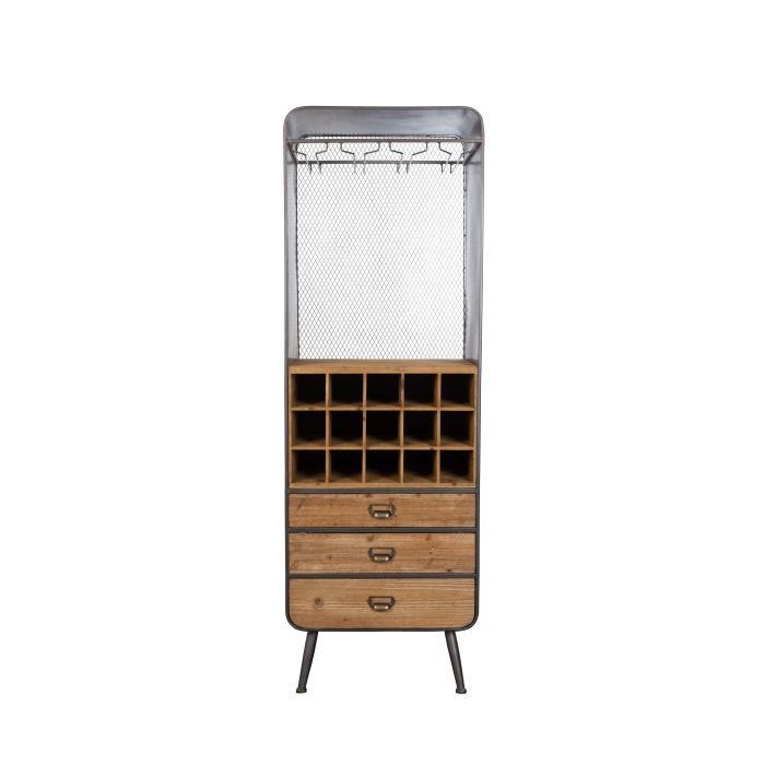 Geef je keuken een mooie update met deze handige kast Vino van Dutchbone. Dezenmoderne wijnkast is bedoeld voor flessen drank, glazen en in de kastjes kun jennog veel meer spullen kwijt. Hij staat niet alleen geweldig in je (open)nkeuken, maar ook bij de zithoek. En als je de wijnflessen verruilt voornopgerolde posters of papieren past deze kast ook heel goed in een kantoor ofnwerkkamer.nnn nKast Vino van Dutchbone bewaart alle benodigdheden voor een gezellige avondnmet vrienden. Wijnkast Vino is ontworpen met een Frans vintage meubel in hetnachterhoofd, dat we ooit in een restaurant in de Provence hebben gespot. Maarnwe gaven onze versie een trendy update met draadgaas aan de achterkant.