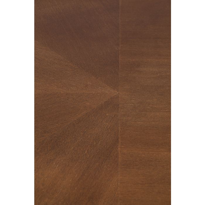 Alle Denise tafels maken onmiddellijk indruk. Deze serie tafels, die varieert van bijzettafel, salontafel tot consoletafel, is er nu ook als eettafel. Er is een ronde eettafel Denise en een ovale eettafel Denise. Allebei vallen ze op door het prachtige stervormige patroon in het tafelblad. Het fineer blad is gebeitst en gelakt in een warme notenhout kleur. Dan hebben we het nog niet eens gehad over die bijzondere messingkleurige afwerking van de poten en het tafelblad. Welke Denise tafelvariant(en) kies jij?