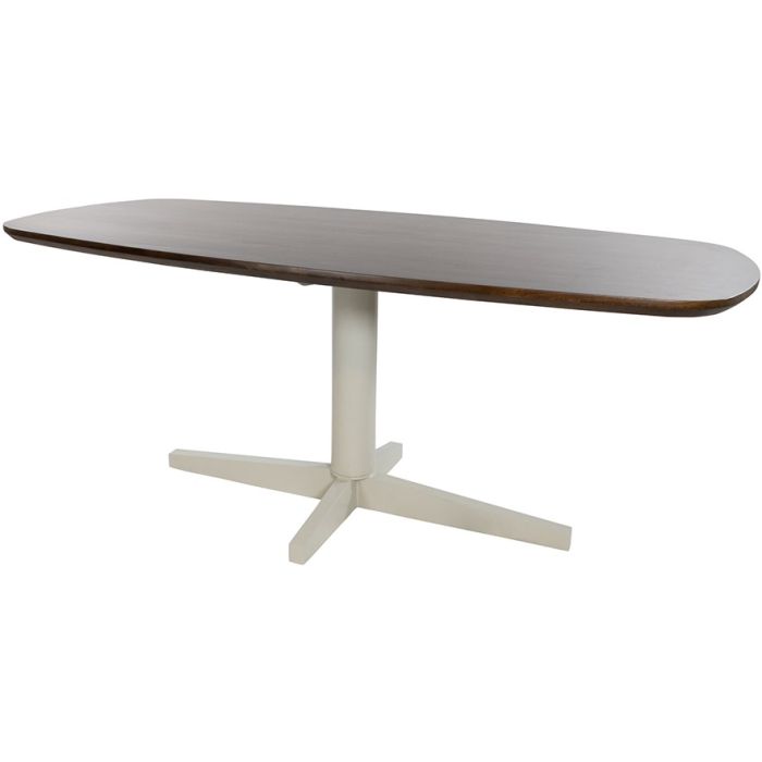 Eetkamertafel 220, Deens ovaal, poot beige, mango bruin-walnoot