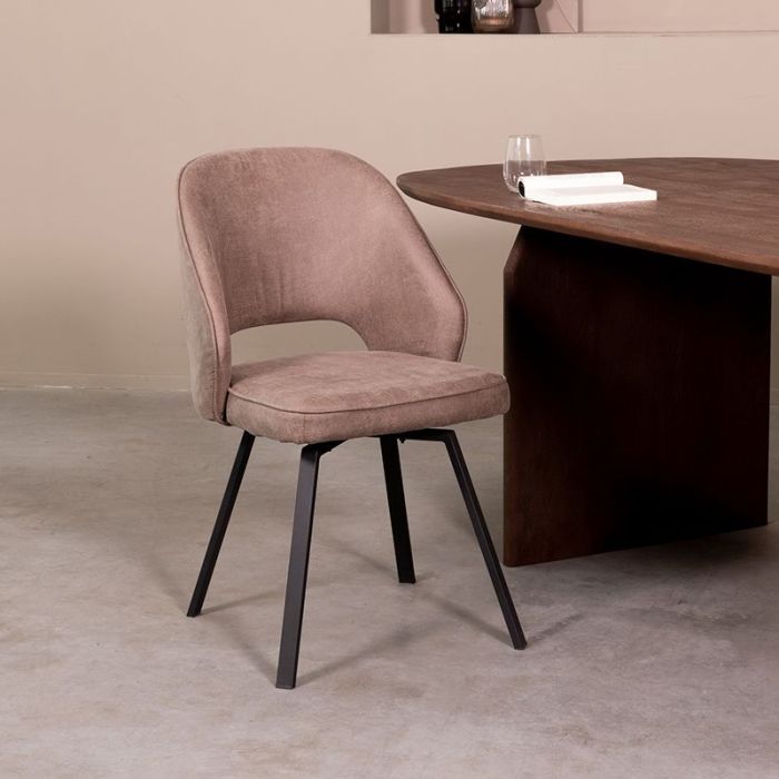 Eetkamerstoel Lewis van LABEL51, uitgevoerd in taupe micro suède, is een elegante stoel met een draaibare zitting. De combinatie van design en functionaliteit maakt het dé perfecte eetkamerstoel in een hedendaagse eethoek.