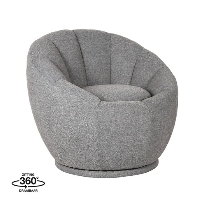 Fauteuil Crown van LABEL51 is een fauteuil met een ontzettend hip design. Zijn naam zegt al genoeg, in deze kroonachtige fauteuil zit je als een koning! Crown is uitgevoerd in grijs bouclé. De handige draaischijf zorgt ervoor dat deze fauteuil 360 graden kan draaien.