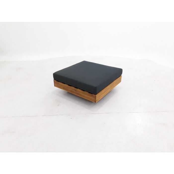 Los Angeles loungetafel 984 — acaciahout, licht teak-look; zwarte stalen details; FSC 100%. Afmetingen 75×75×21,5 cm. Inclusief standaard zitkussen donkergrijs.