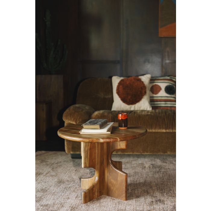 Met de Dutchbone Morgan voeg je moeiteloos warmte toe aan je interieur. De tafel is gemaakt van acaciahout in verschillende stroken, wat zorgt voor een karakteristieke uitstraling. Maar wat pas echt opvalt, is natuurlijk het onderstel. De gekruiste poot met ongelijke happen eruit, geeft een speels effect en doet denken aan de look van een retro interieur. Dit maakt de tafel net even anders en daarmee de perfecte toevoeging aan een sfeervolle woonkamer of knusse leeshoek.