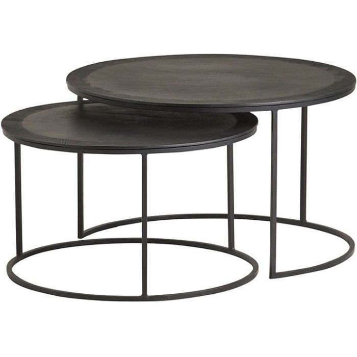 De Verona salontafel set van 2 uit de Mix & Match Collection is een stijlvolle en veelzijdige toevoeging aan je interieur. De set bestaat uit twee ronde salontafels, waarvan de grotere tafel een diameter van 70 cm heeft en de kleinere 60 cm. Beide tafels zijn gemaakt van zandgegoten aluminium met een mat zwarte afwerking, wat zorgt voor een moderne, industriële uitstraling. Het metalen frame is zwart gepoedercoat en biedt stevigheid en een strak design.
